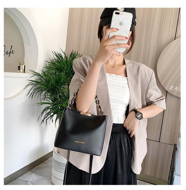 大きなチェーンの手提げがおしゃれ◎