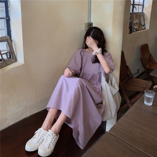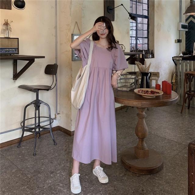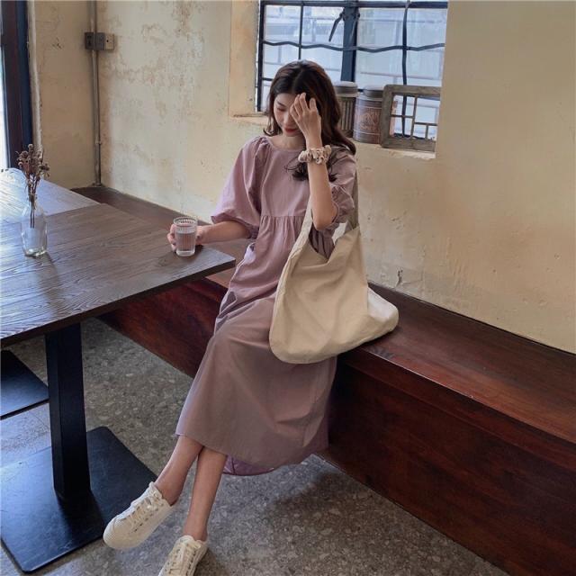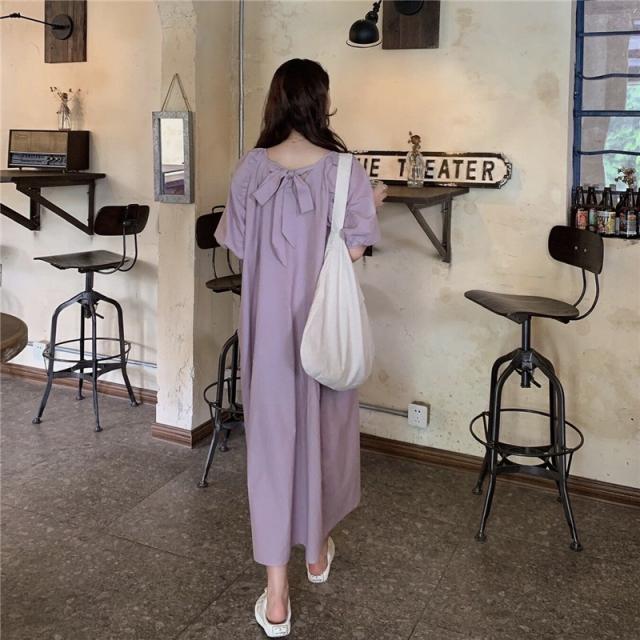 ワンピース レディース 半袖 パフスリーブ ボリューム袖 ランタンスリーブ 襟なし スクエアネック ロング丈 バックリボン ギャザー ゆったり 大人可愛い シンプル カジュアル 大人 上品 おしゃれ お洒落 大人女子 こなれ感 ルーズ 抜け感 存在感 ワンサイズ フリーサイズ 白 アイボリー 藤色 紫 パープル ラベンダー すみれ色 無地 春 夏 秋 10代 20代 30代 40代 50代 デート お出かけ 女子会 休日 イベント 旅行 韓国 オルチャン 普段使い デイリー 楽ちん リゾート