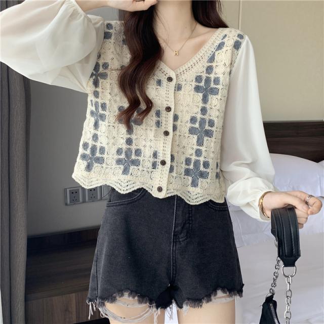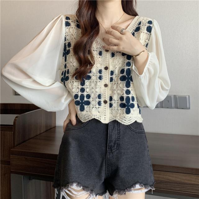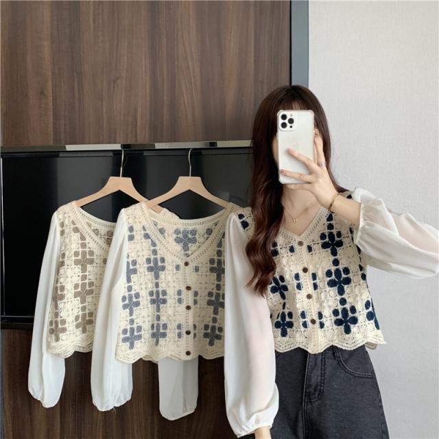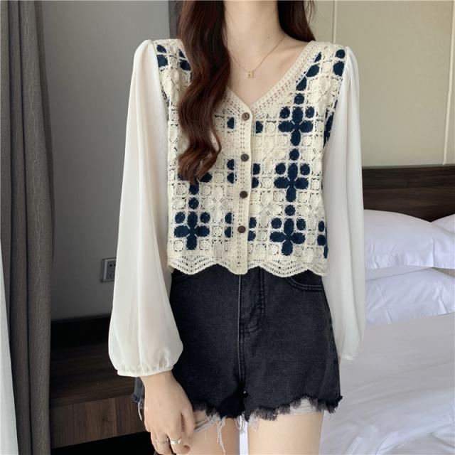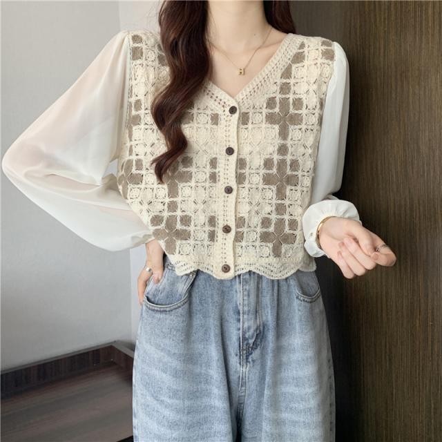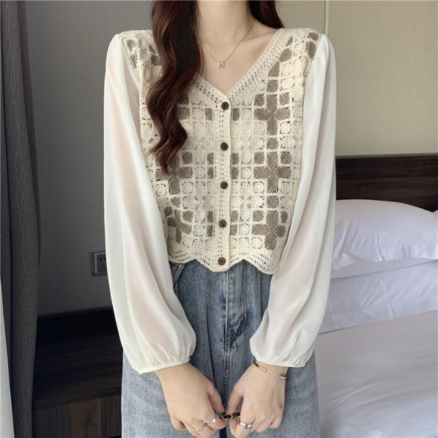 身頃はクロシェ編み、袖はシフォンと異素材MIXがおしゃれ◎