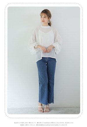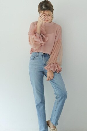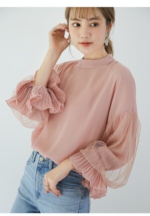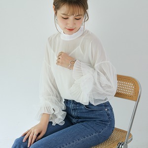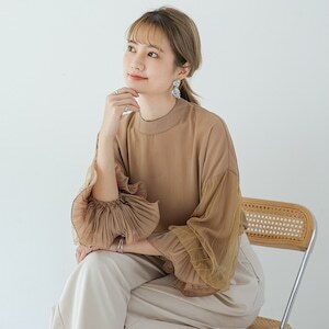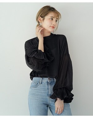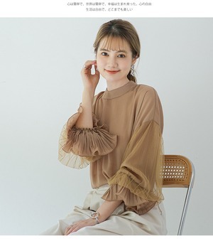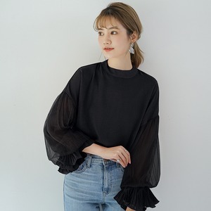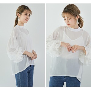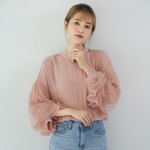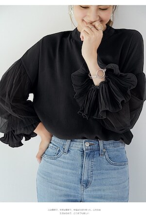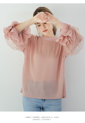 存在感のあるシフォンのボリューム袖がポイントの大人可愛いトップス◎