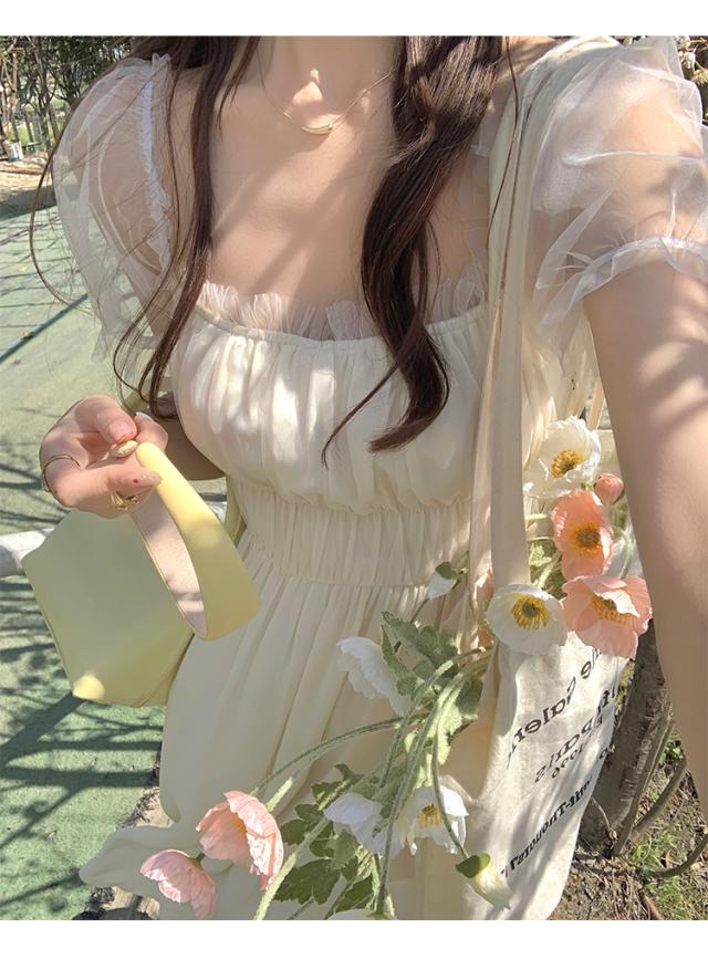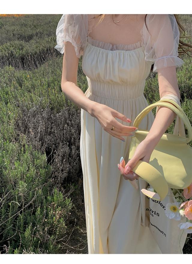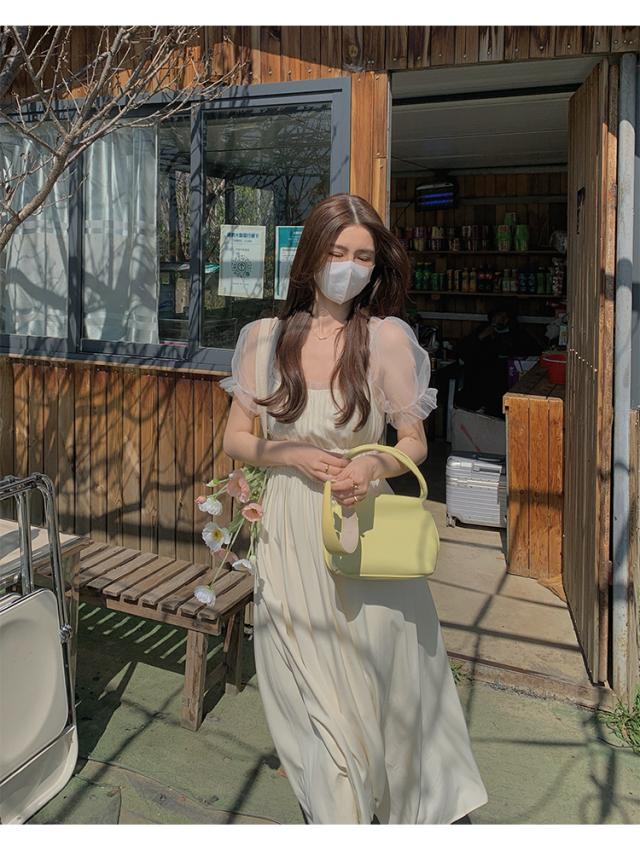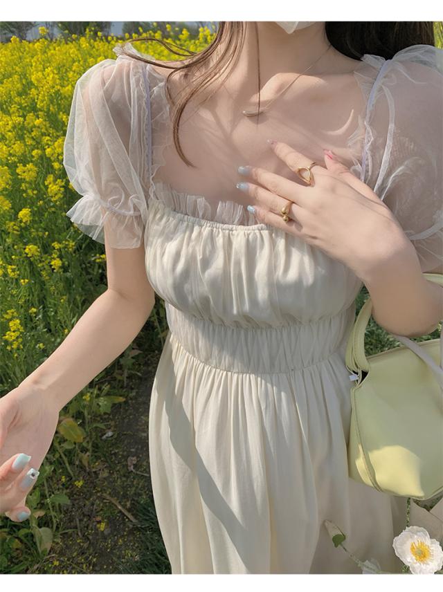 ワンピース ドレス レディース ロング丈 半袖 パフスリーブ 演奏会ドレス 発表会ドレス ワンピドレス ワンピースドレス シースルー袖 メロウフリル ギャザー スクエアネック Aライン フレア エレガント 大人可愛い きれいめ シンプル ナチュラル 華やか 大人 上品 おしゃれ お洒落 存在感 清楚 S M L XL 白 ホワイト 無地 春 夏 お出かけ お呼ばれ パーティー 謝恩会 スタジオ 撮影 10代 20代 30代 40代 ピアノ ホテル レストラン 韓国 オルチャン プレゼント ギフト モテ
