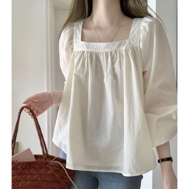 トップス レディース ブラウス カットソー 長袖 スクエアネック プルオーバー ギャザー スモック 大人可愛い シンプル カジュアル 大人 上品 おしゃれ お洒落 大人女子 こなれ感 抜け感 存在感 ガーリー 爽やか S M L XL 白 ホワイト 無地 春 夏 秋 10代 20代 30代 40代 50代 60代 ママ 学生 通学 お出かけ 女子会 休日 旅行 イベント 普段使い デイリー 着回し 重ね着 韓国 オルチャン 楽ちん モテ 公園デビュー