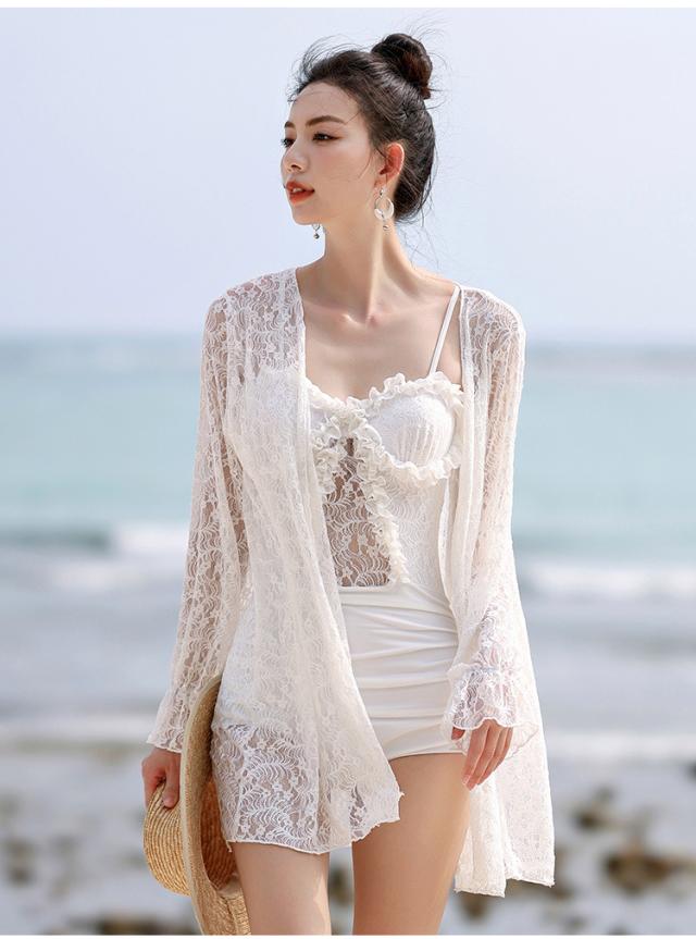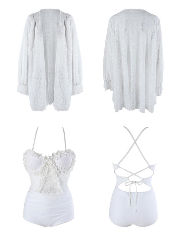 水着 スイムウエア レディース ワンピース 長袖ガウン 2点セット レース フリル バッククロス バックシャン セクシー sexy 大人可愛い きれいめ おしゃれ お洒落 シンプル 大人 大人っぽい 主役級 存在感 クール ゴージャス 華やか 女っぽ 体型カバー M L XL ブラック 黒 ホワイト 白 無地 10代 20代 30代 40代 50代 ビーチ 海 夏 プール リゾート 旅行 着痩せ 美脚 脚長 スタイルアップ 美スタイル モテ 韓国 オルチャン 高見え プレゼント ギフト 格上げ 夏