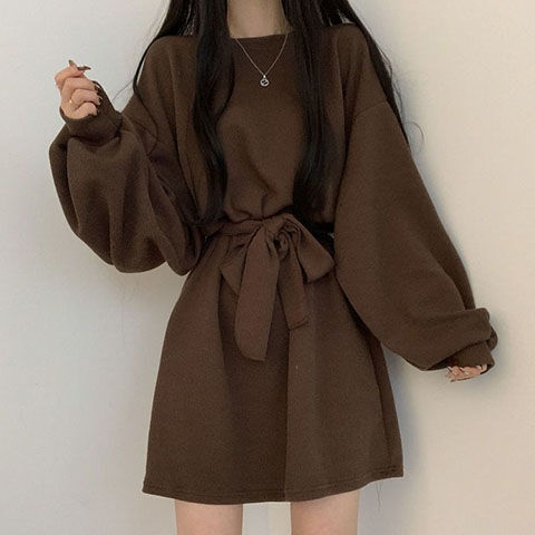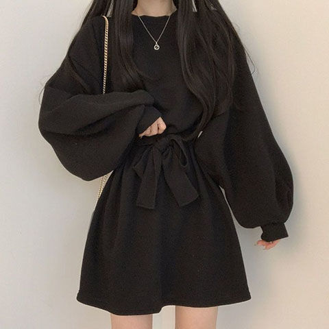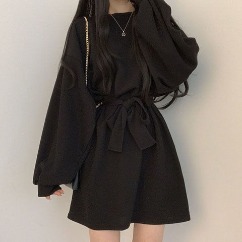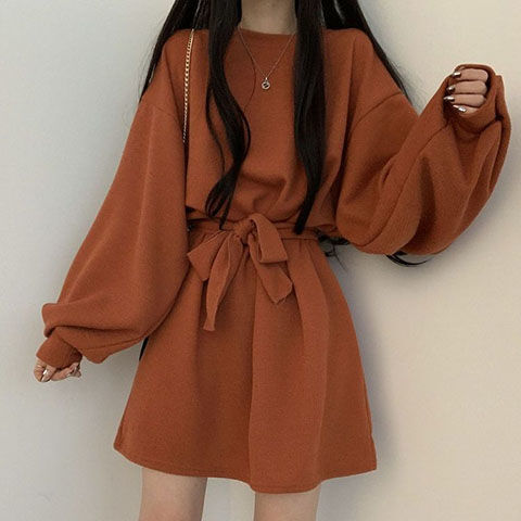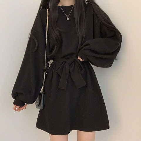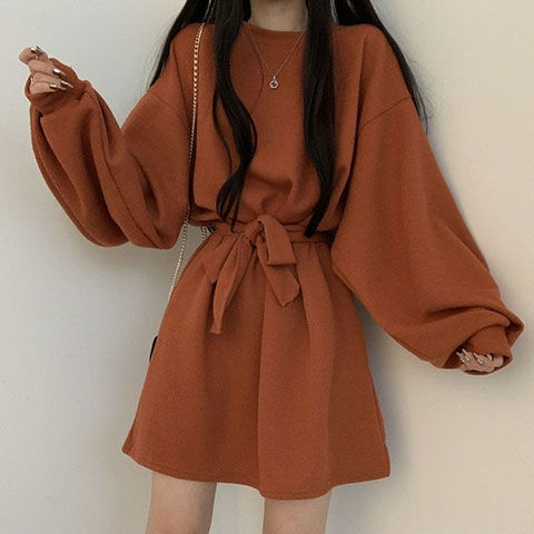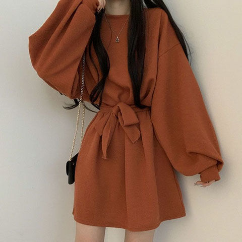 ワンピース レディース ミニワンピース Aライン ショート丈 ミニ丈 ドロップショルダー 長袖 ウエストリボン 萌袖 かわいい きれいめ シンプル おしゃれ お洒落 こなれ感 キュート ガーリー フェミニン 存在感 M L XL 2XL 黒 ブラック ブラウン 茶色 オレンジ 無地 春 秋 冬 デート お出かけ お呼ばれ パーティー 女子会 旅行 イベント 10代 20代 30代 プレゼント ギフト モテ 高見え 格上げ 普段使い デイリー お揃い 双子 韓国 オルチャン