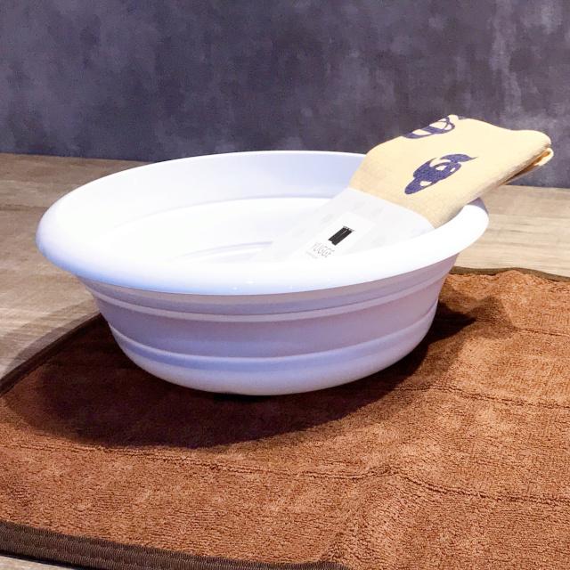 使用前後は、畳んでコンパクトに収納できるのでかさばる湯桶もこれなら鞄の中にも納まりやすいかと思います。