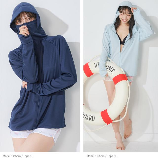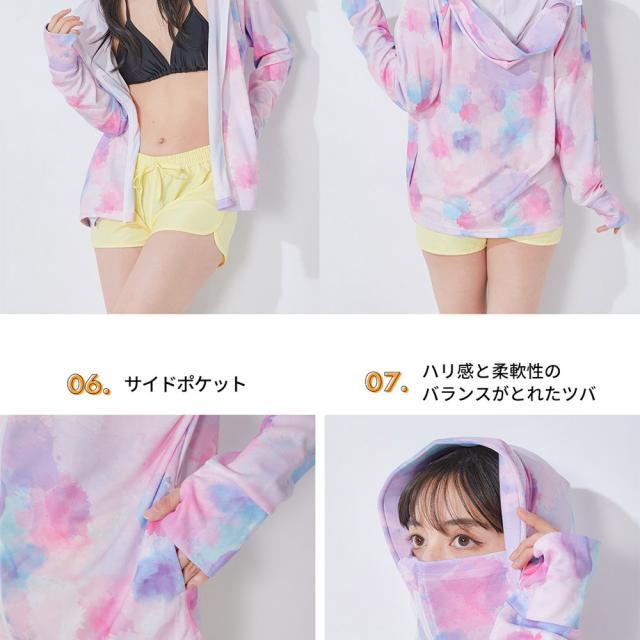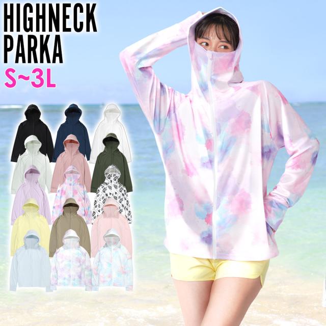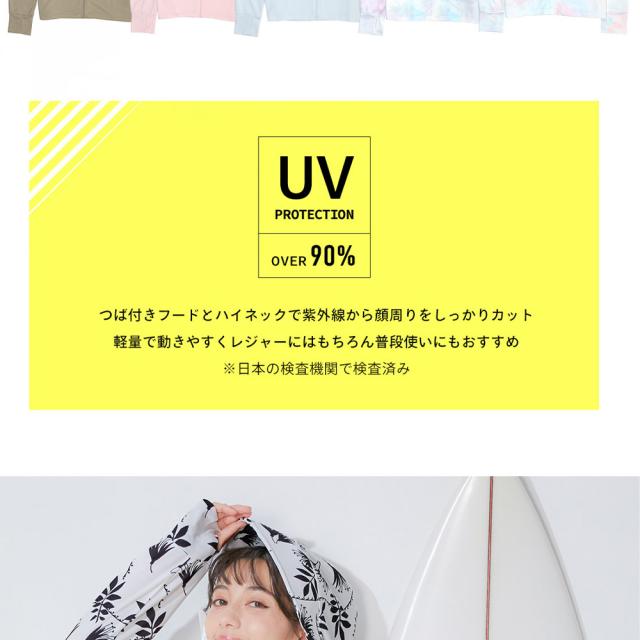 レディース ラッシュガード パーカー ハイネックタイプ ツバ付きフード