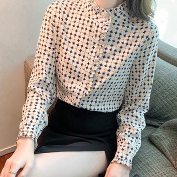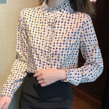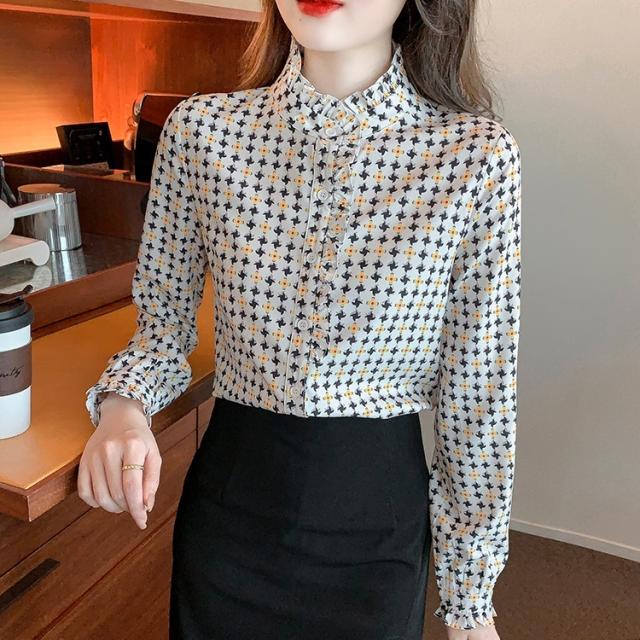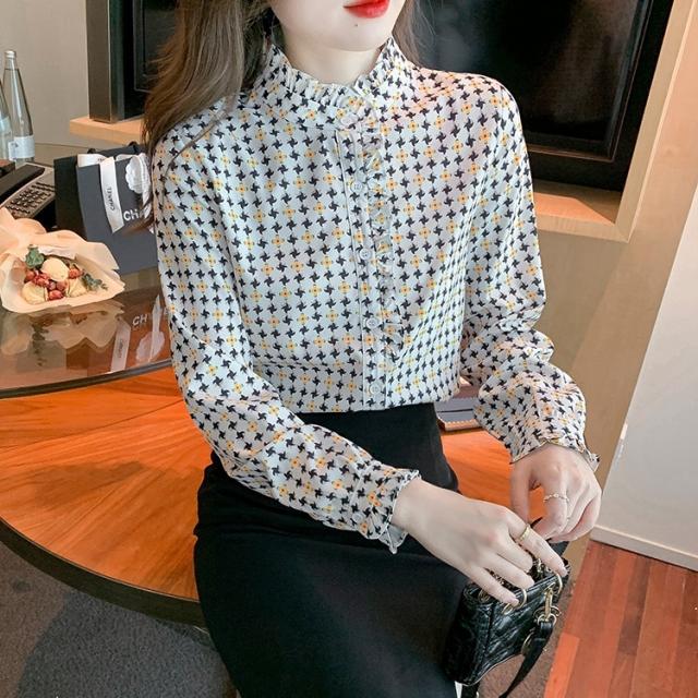 トップス ブラウス シャツ 花柄 フリル 長袖 レディース きれいめ 上品 エレガント レトロ アンティーク ヴィンテージ 大きめ 大きいサイズ S М L XL 2XL お洒落 オシャレ かわいい 大人可愛い 20代 30代 40代 50代 60代 ОL 通勤 仕事 オフィス カジュアル 春 秋 夏 冬 オールシーズン 休日 お出かけ 買い物 女子会 韓国 トレンド 流行 Iライン ストレート 薄手 ホワイト 白 ブルー 前開き ボタン 新作 2022 総柄 フラワー 映え SNS ガーリー 個性的