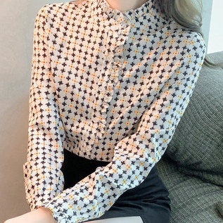 トップス ブラウス シャツ 花柄 フリル 長袖 レディース きれいめ 上品 エレガント レトロ アンティーク ヴィンテージ 大きめ 大きいサイズ S М L XL 2XL お洒落 オシャレ かわいい 大人可愛い 20代 30代 40代 50代 60代 ОL 通勤 仕事 オフィス カジュアル 春 秋 夏 冬