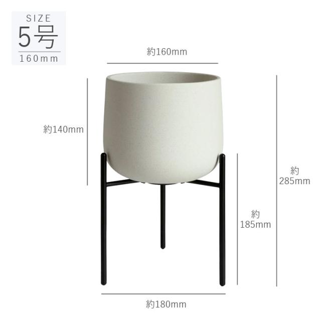 こちらは直径160mm、約5号サイズのスタンド付きプラントポットです。
