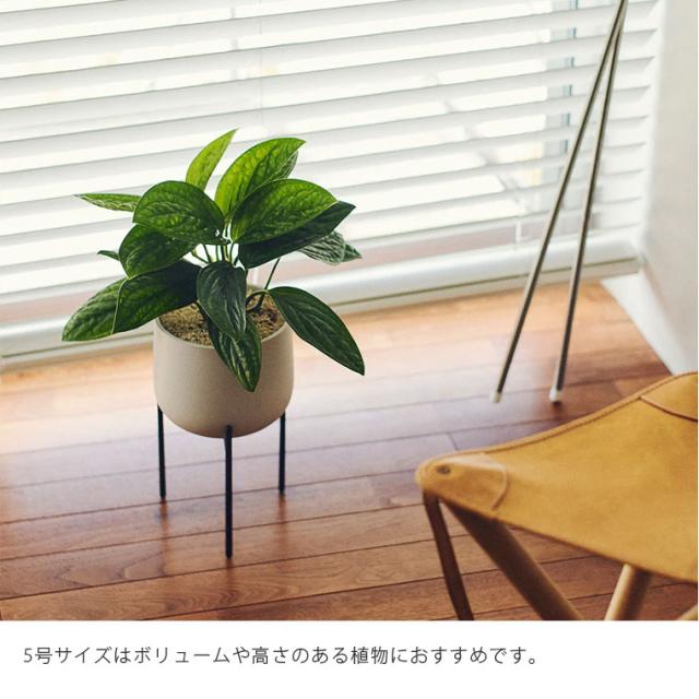 落ち着いた表情のスタンドと、風合いのある素材を用いた丸みのある鉢は、モダンな空間に馴染みます。