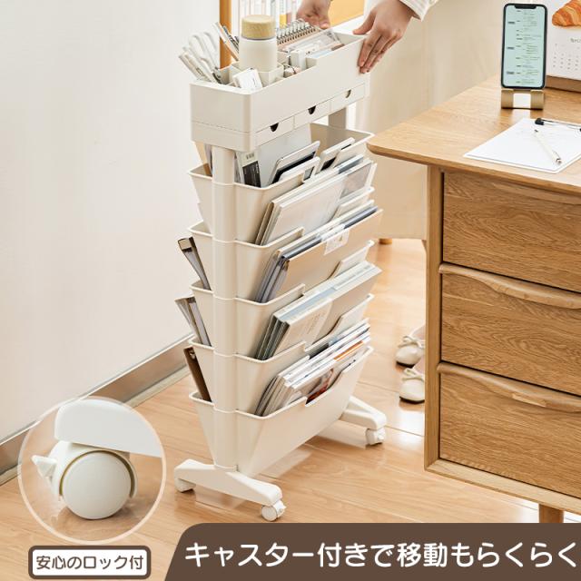 マガジンラック スリム ファイルワゴン キャスター おしゃれ 北欧 収納 ブックスタンド 本立て ブックシェルフ 小学生 ラック 本棚 棚 移動 雑誌 小物 文房具 文具 ファイル 書類 棚 コンパクト 薄型 ファイルボックス a4 a3