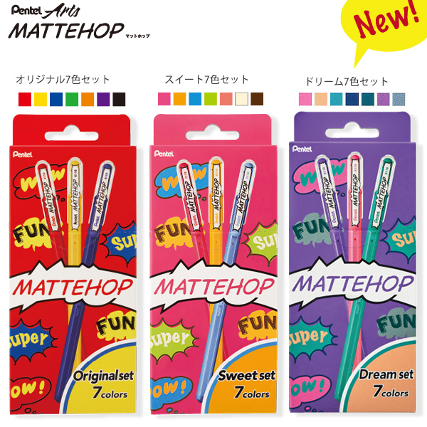 ぺんてる MATTEHOP マットホップ ゲルインク ボールペン 芯径1.0mm 7色セット マットな質感 カラーペーパーにも濃く鮮やか K110 -V7STA オリジナルセット / -V7STB スイートセット / -V7STC ドリームセット デコレーション 写真にデコ イラスト