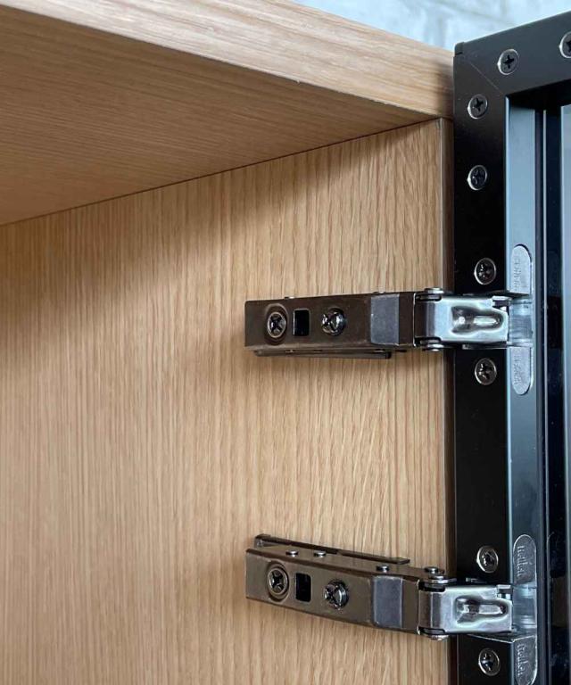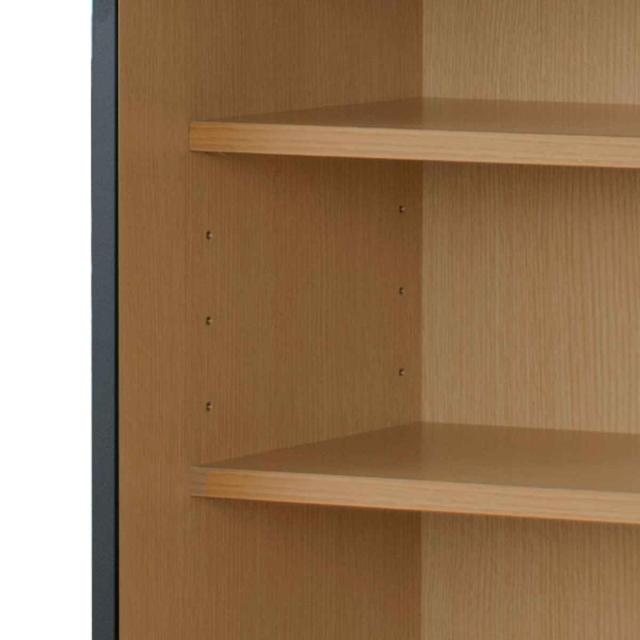 扉内の棚には、お好みの高さで使える可動式の棚2枚付きです。キッチン、書斎どちらにもマッチするデザインなので、用途に応じて収納することができます。