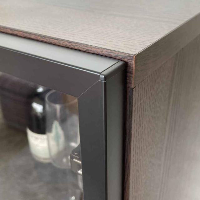 うっすらブラウンがかった上品なガラス扉は、4mmの強化ガラスで飛散防止フィルム塗装が施されています。収納物やコレクションをほこりから守りきれいにディスプレイすることができます。ワインボトルの収納にもピッタリです。