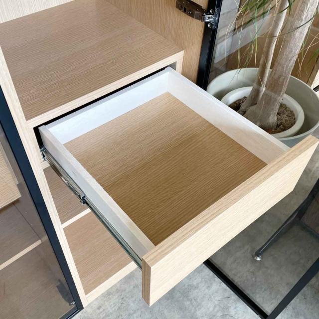 上品な透け感のガラスと扉の中の引出しが高級感あふれるデザイン