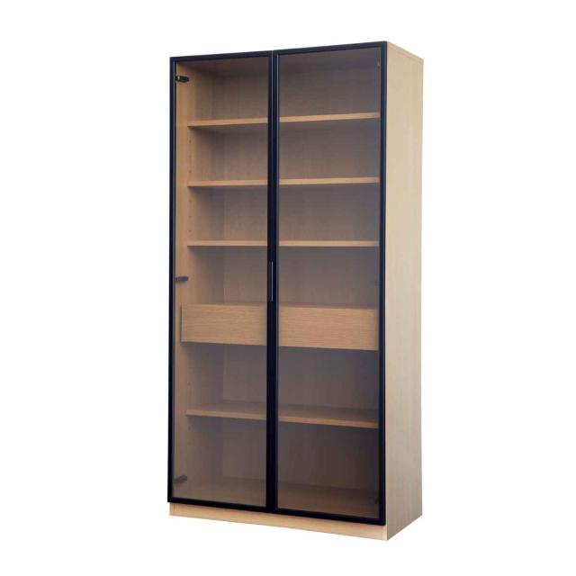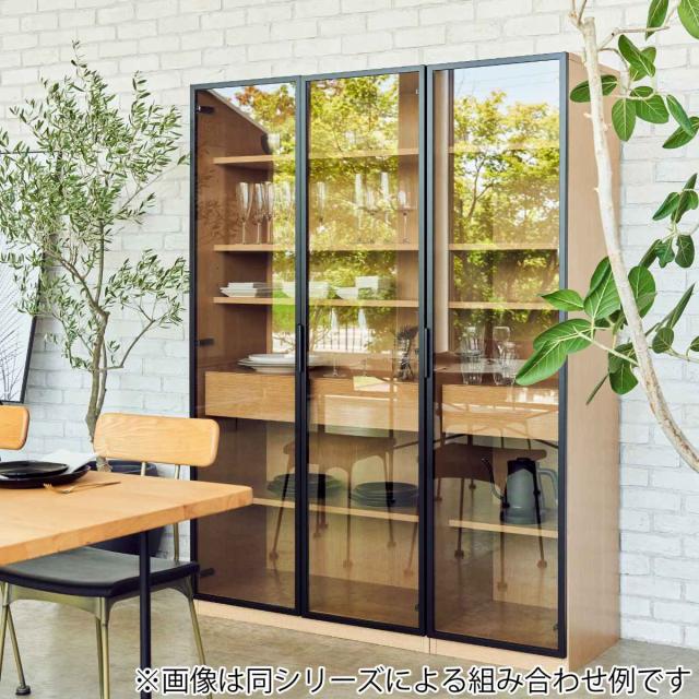 ガラスキャビネット ハイタイプ リビング収納 LOCKO 日本製 幅90cm ( 開梱設置 キャビネット 収納 家具 リビング 完成品 ディスプレイ 飾り棚 棚 ラック 引き出し 可動棚 シンプル ナチュラル ブラウン )