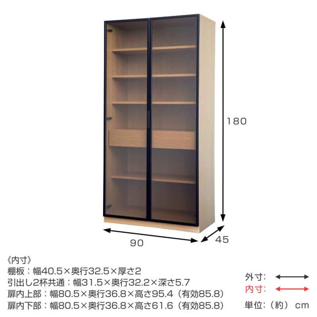 ![]() 上品な透け感のガラスと扉の中の引出しが高級感あふれるガラスキャビネット ハイタイプ幅90cm |