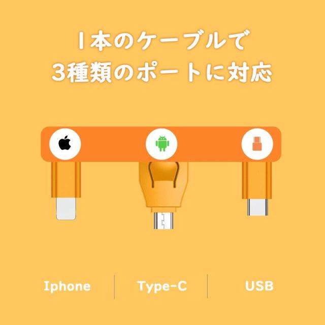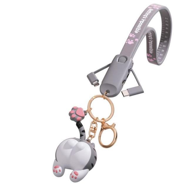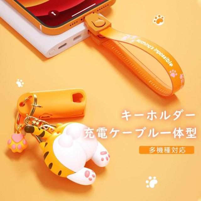 キーホルダー 充電ケーブル 3in1 かわいい猫 鍵リング iphone Type Cケーブル Micro USBケーブル 1本3役 ライトニングケーブル 人気