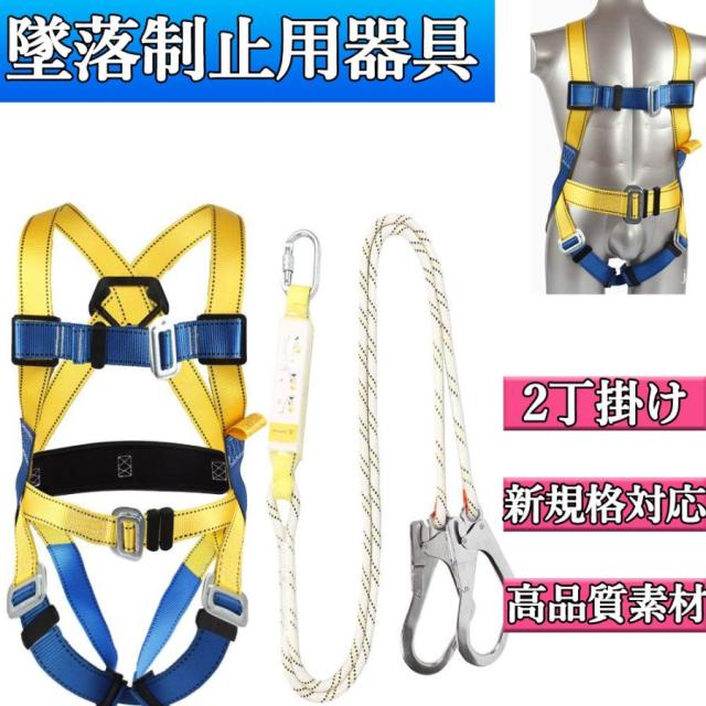 新規格 フルハーネス 安全帯 2丁掛け 墜落制止用器具 ツインランヤード 落下防止 電気工事 高所安全作業用 電気工事、建設工事、登山 新規格セット フルハーネス