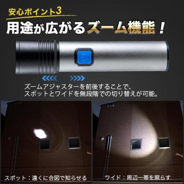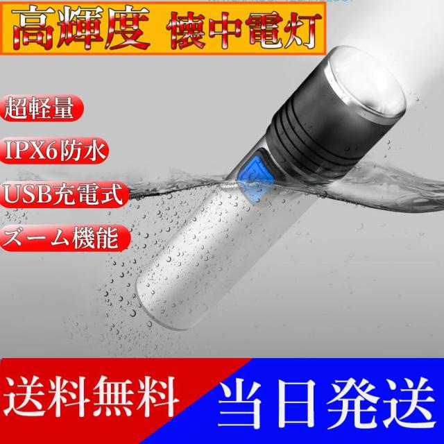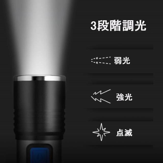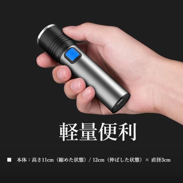 ★即日発送★ LED 懐中電灯 強力 ハンディライト 3モード ズーム 超高輝度 ワークライト フラッシュライト 作業灯 充電式 小型 軽量 USB充電式 防水 防災