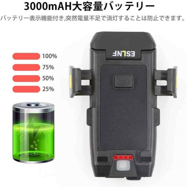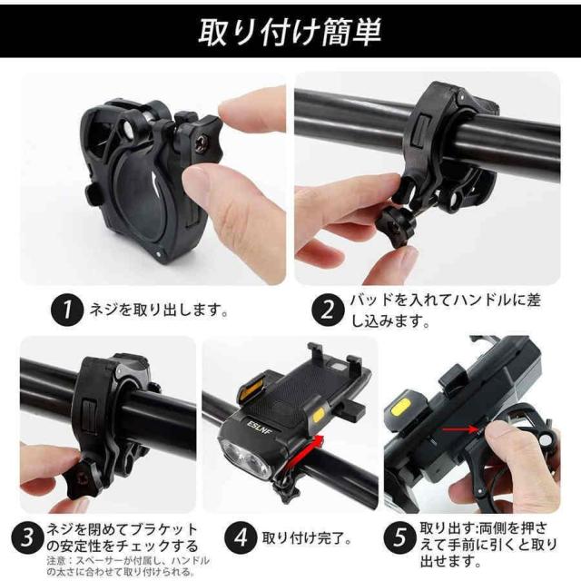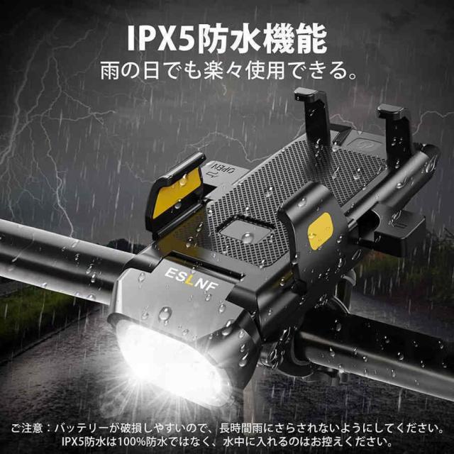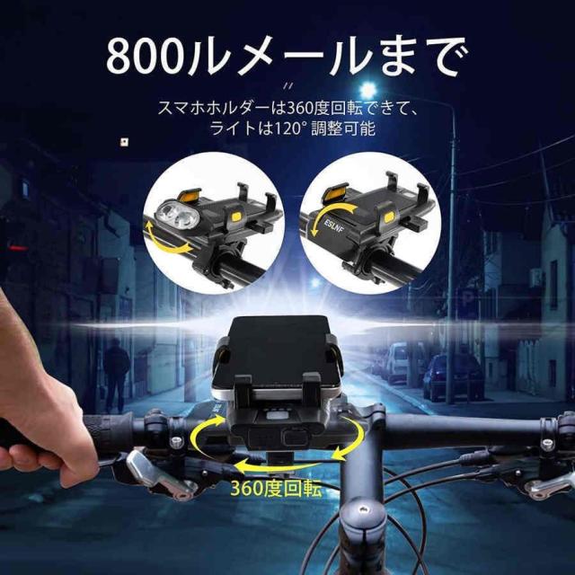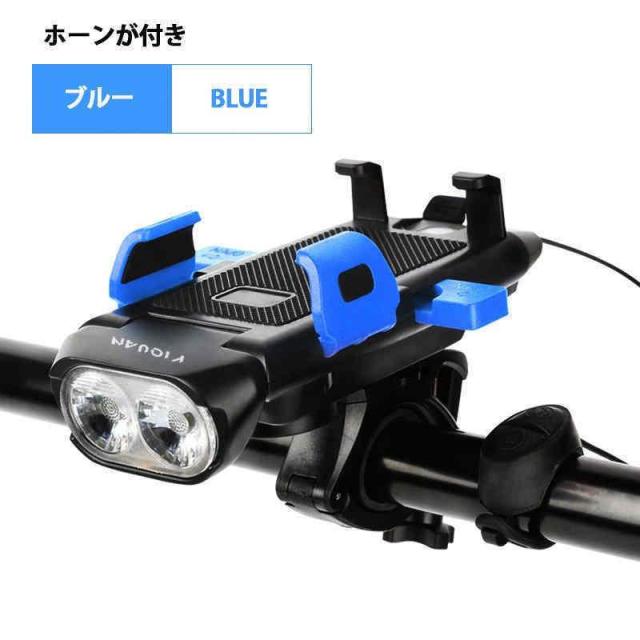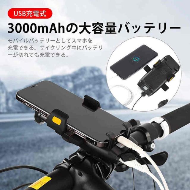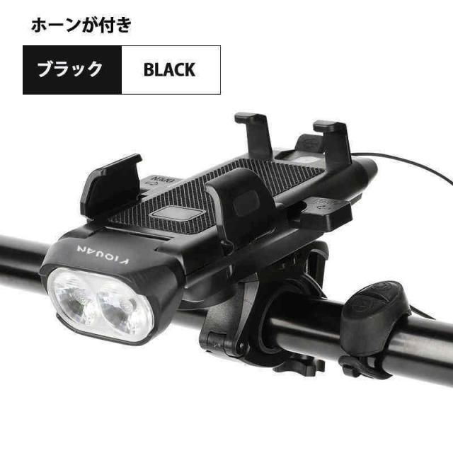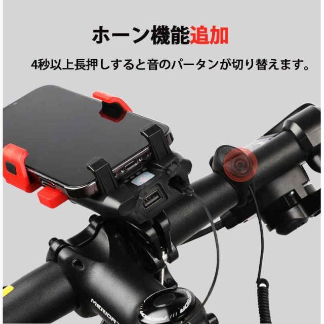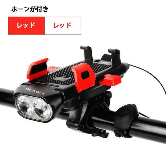 自転車ライト 4 in1多機能自転車スマホホルダー 自転車ホーン 自転車ラッパ USB充電式 モバイルバッテリー