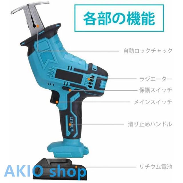 充電式レシプロソー 電気こぎり(本体のみ)大工ツール 強力 小型 片手 軽量 家庭用 伐採 薪割り 草刈り 木工切断 枝切り 枝剪定 枝打ち 園芸設備 農業