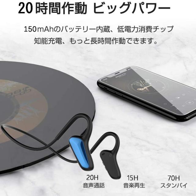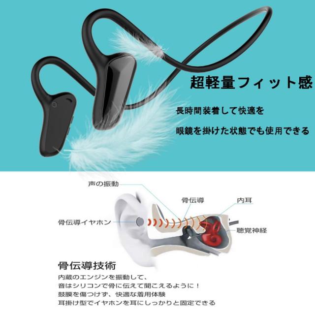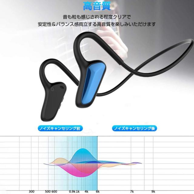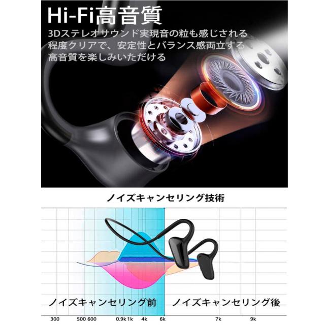 骨伝導 イヤホン Bluetooth ワイヤレス マイク付き ヘッドホン 耳掛け ブルートゥース イヤホン 両耳通話キャンセリング IPX6防水 iPhone/Android適用 スポーツ