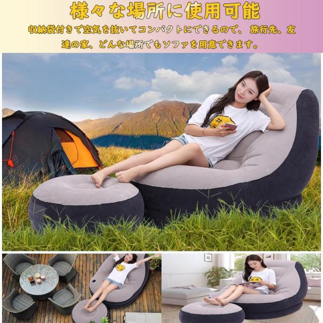 【エアーソファー&オットマンセット】エアソファー エアオットマン airsofa 1人掛け 1P エアクッション 持ち運び 移動 簡単設置 アウトドア インテリア
