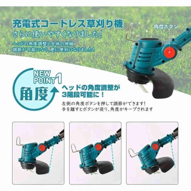 草刈り機 充電式 草刈機 電動刈払機 18Vバッテリー互換 伸縮式 コードレス グラストリマー 角度調整 替え刃付き 枝切り 軽量 バッテリーなし別売り