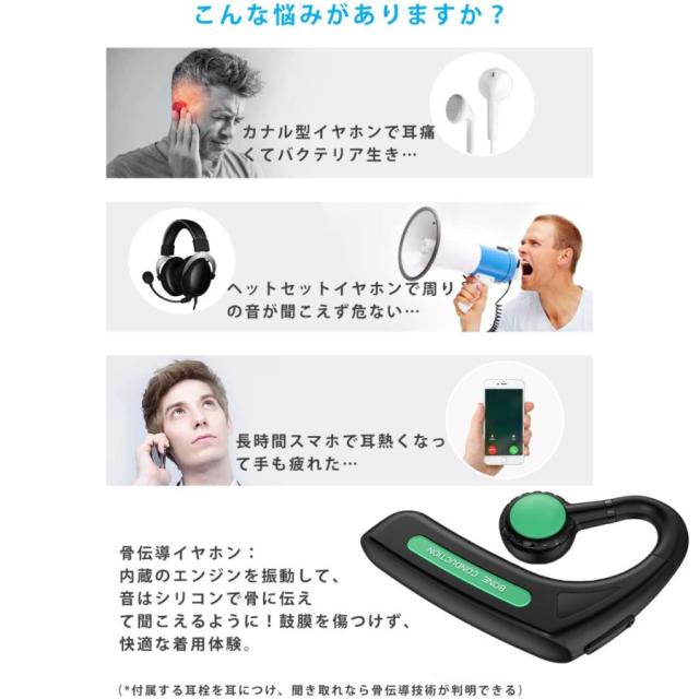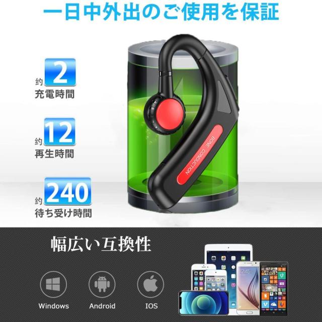 骨伝導 イヤホン Bluetooth 片耳掛け ワイヤレス マイク付き ヘッドホン 耳掛け ブルートゥース イヤホン IPX6防水 iPhone/Android適用 スポーツ おすすめ