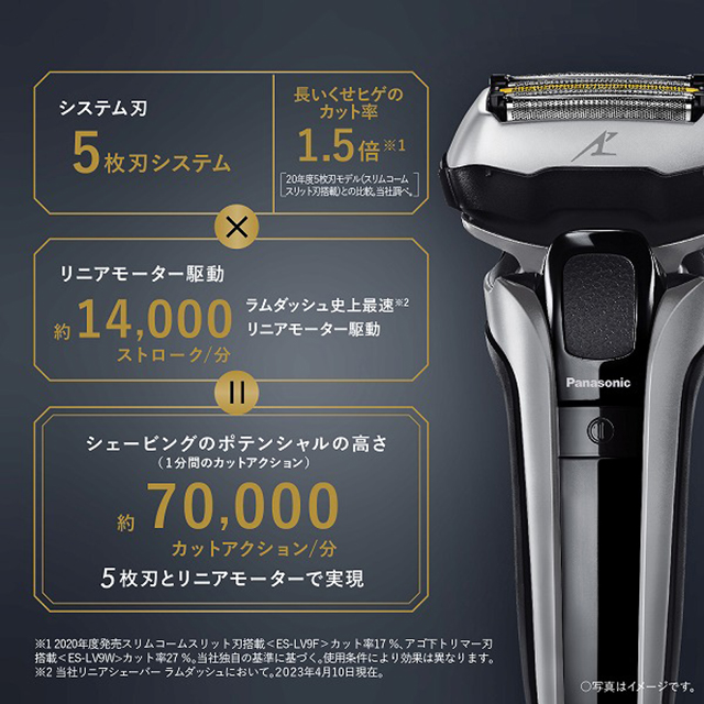 ・5枚刃をリニアモーターが高速駆動、濃く太いヒゲもすばやく剃りきる。