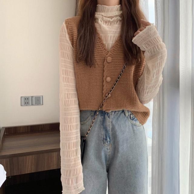 ニット ベスト レディース コーデ 春 秋 ベスト レディース 秋冬 前開き ニットベスト 春ベスト リネンライク 着回し トップス