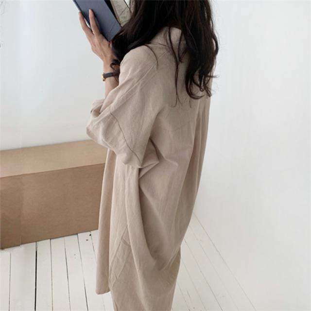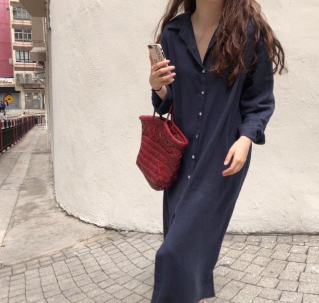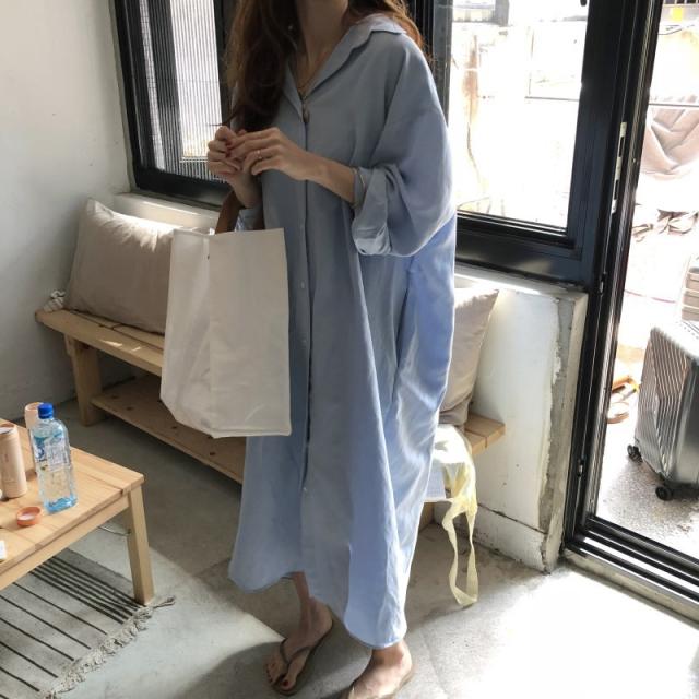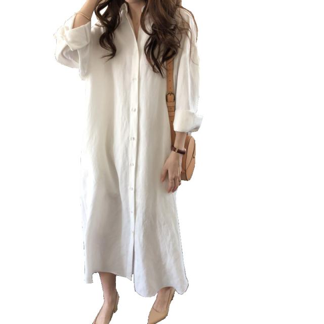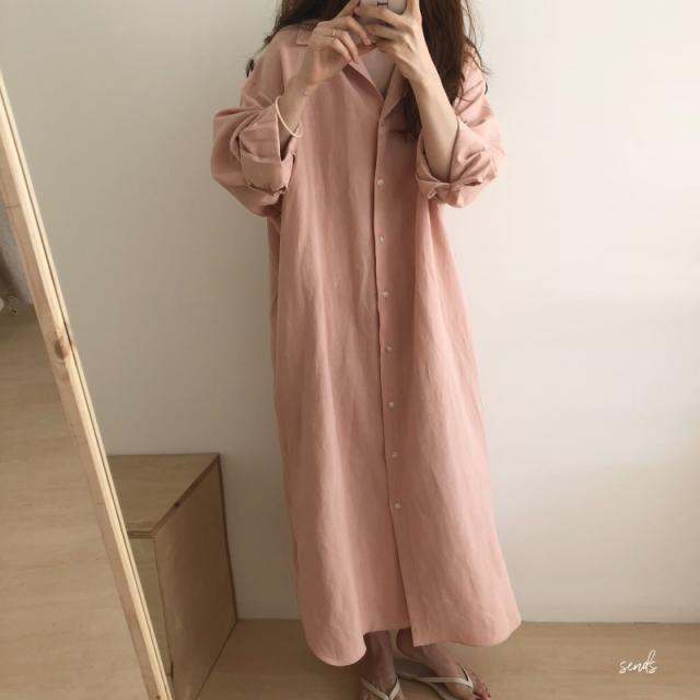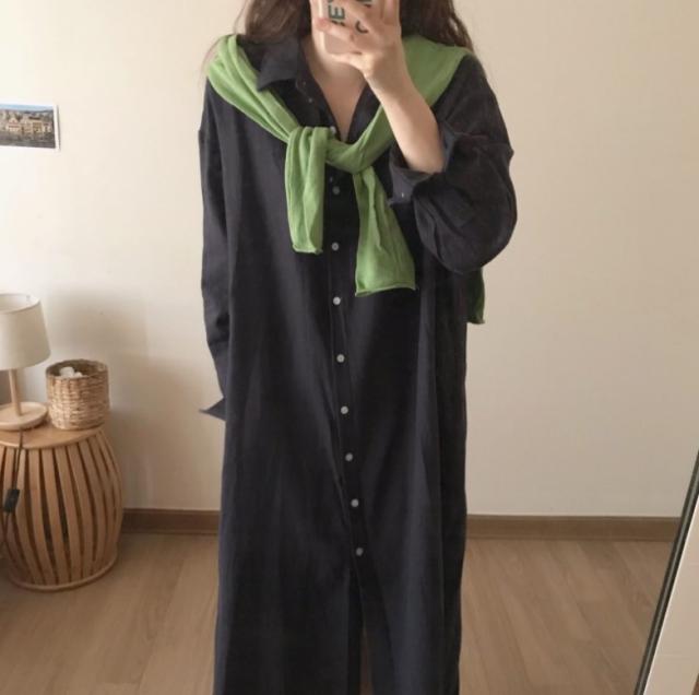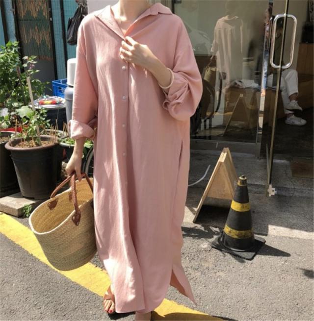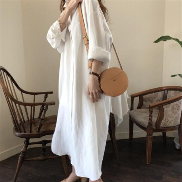 ワンピース レディース シャツワンピース 体型カバー シンプル 無地 長袖 ロング丈 大きいサイズ ゆったり おしゃれ 通勤 春 秋 秋物