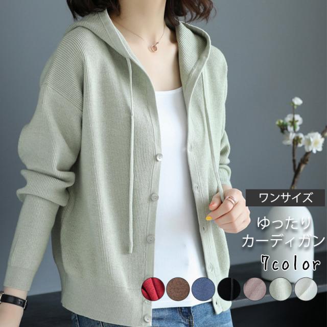カーディガン レディース ニットカーディガン ニット フード付き 無地 トップス カジュアル オフィス おしゃれ アウトドア 春秋