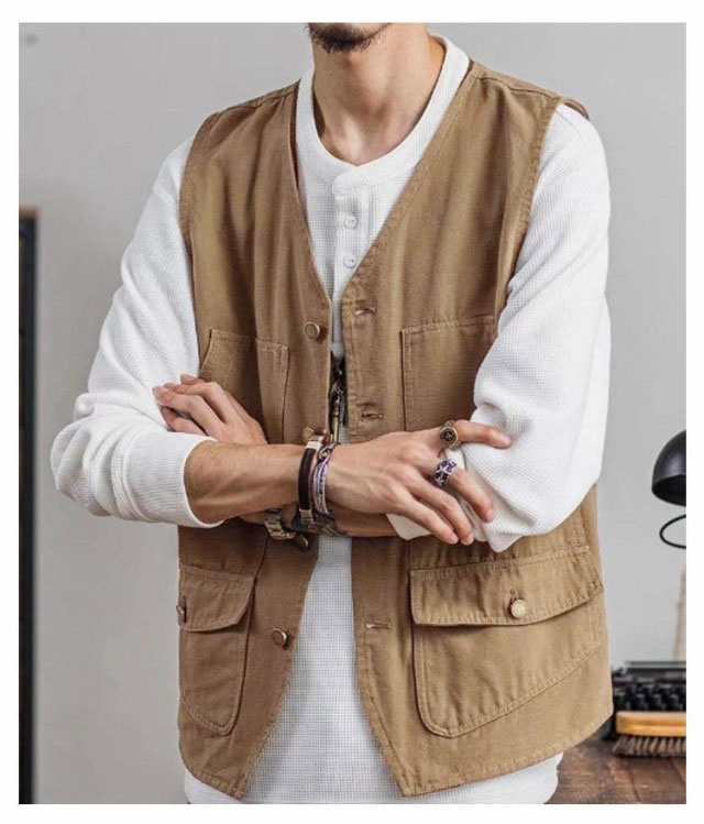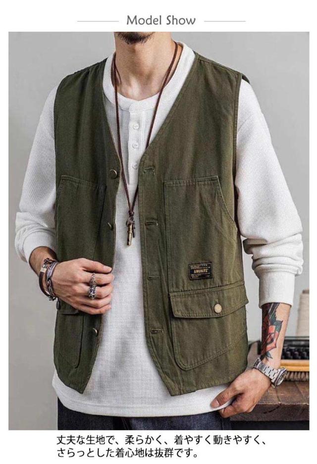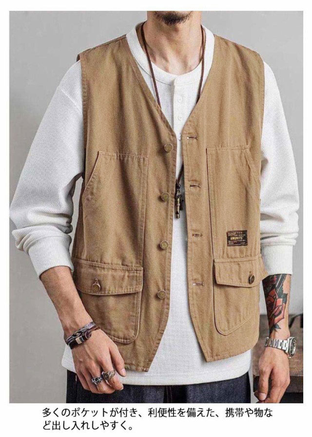 | レイヤードスタイルを楽しめるカジュアルベスト 丈夫な生地で、柔らかく、着やすく動きやすく、さらっとした着心地は抜群です。 Vネックとボタンを配したデザインで上品な印象に仕立てられています。 程よい厚さ、レイヤードスタイルに最適な1着。 多くのポケットが付き、利便性を備えた、携帯や物など出し入れしやすく。 アウトドア、キャンプ、作業、登山、釣り、旅行や手ぶらでのお出かけに、マルチシーンで活躍してくれます。 | |
