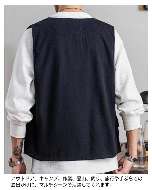 ワークべスト メンズ 多機能 アウトドア ジレ ミリタリー カジュアル 釣り トップス 秋冬 春 男性 おしゃれ ゆったり 体型カバー 無地 シンプル 多ポケット 袖なし ノースリーブ ストリート 普段着 大きいサイズ キャンプ 前開き ギフト プレゼント 送料無料
