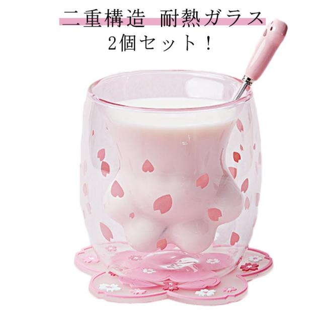 2個セット!グラス ダブルウォール 二重構造 アニマル ネコ 耐熱ガラス 可愛い プレゼント ギフト コップ ダブルウォールグラス タンブラー 動物 耐熱 カップ 猫 ネコ かわいい 結露 水滴がつかない