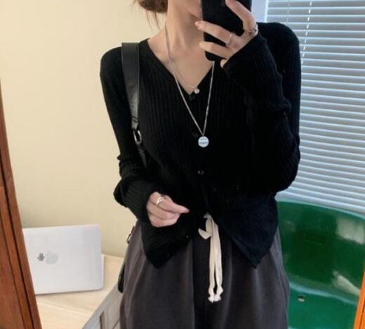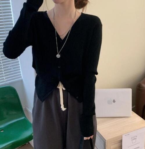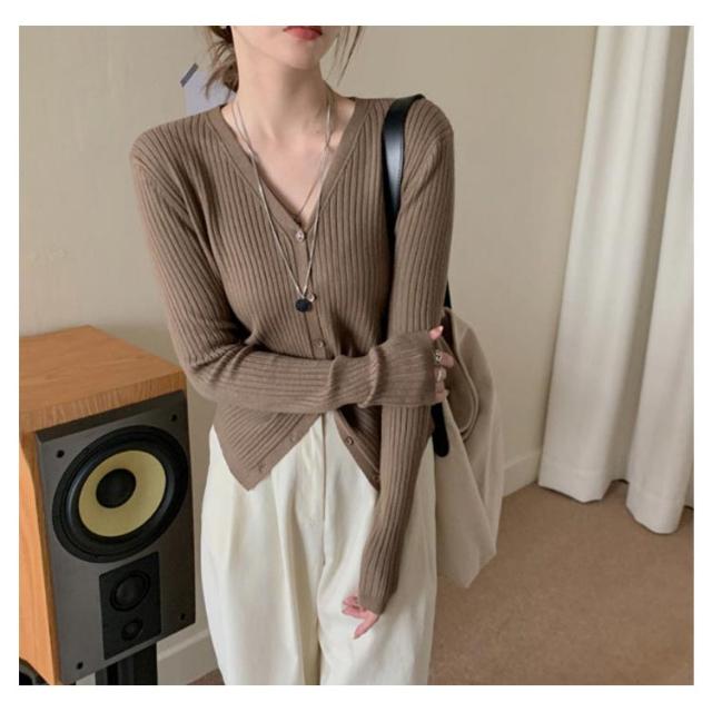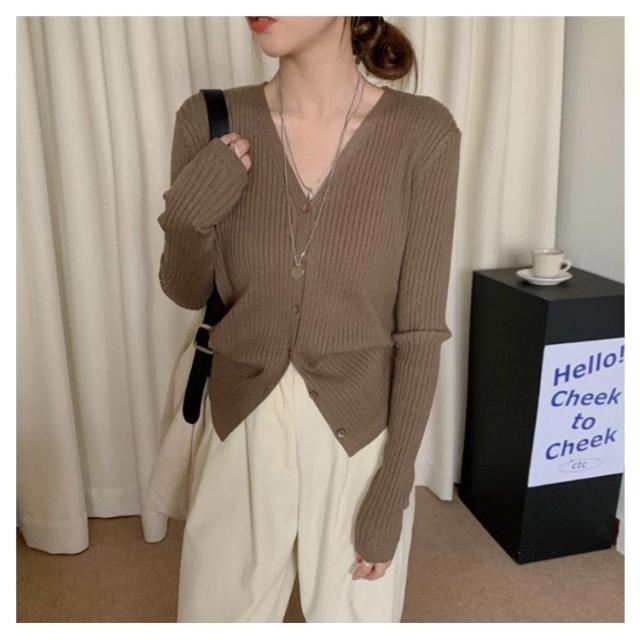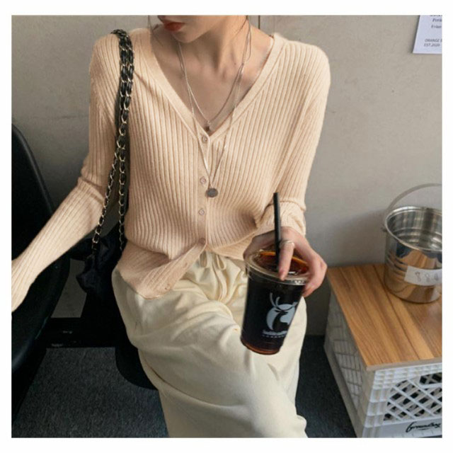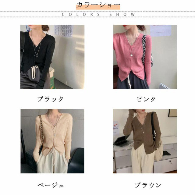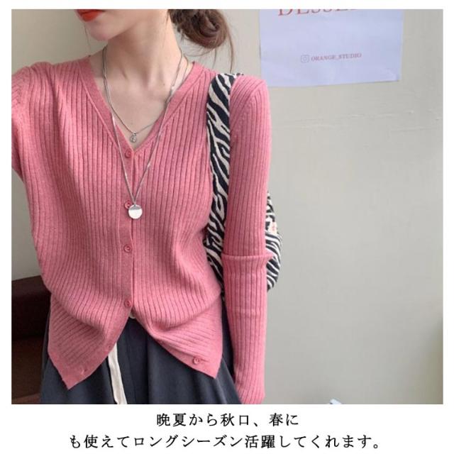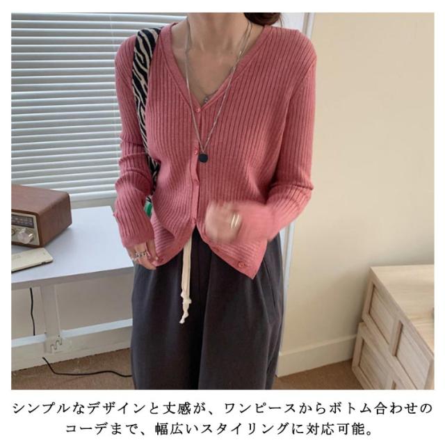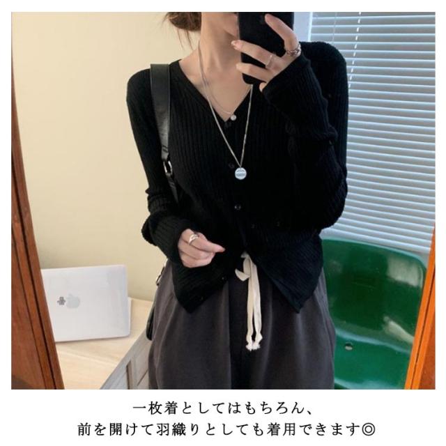 カーディガン レディース リブニットカーディガン トップス 長袖 ショート丈 Vネック ニットカーディガン スリム タイト 細身 羽織 ライトアウター シンプル 無地 ストレッチ オフィス カジュアル フェミニン 春秋 秋服 送料無料