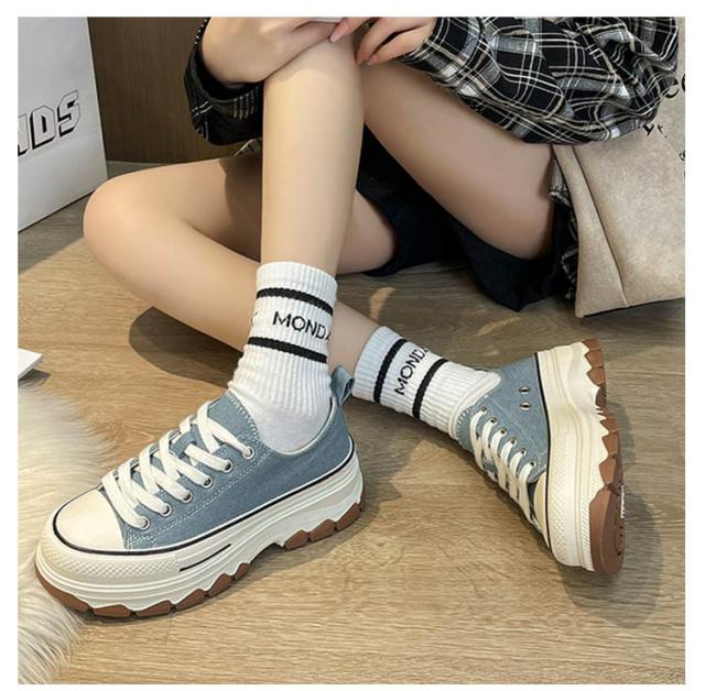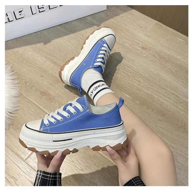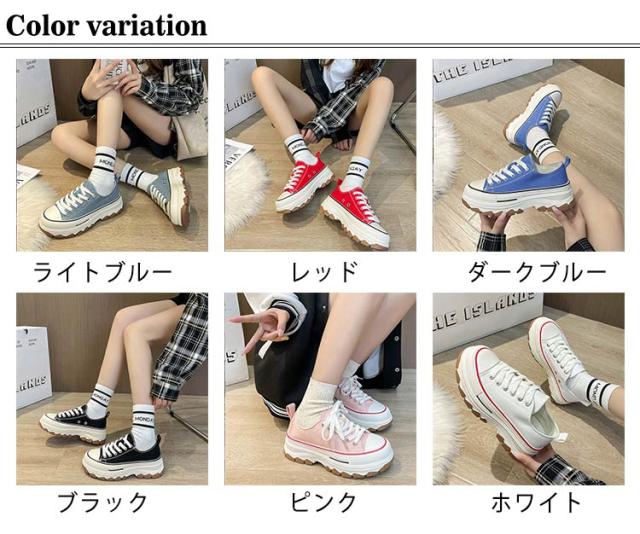 スニーカー レディース 厚底 ローカット 5cmUP スニーカー 靴 フラットシューズ カジュアル キャンバスシューズ ジュニア コンフォート スポーツシューズ スニーカー靴 お洒落 疲れない 白 黒 青