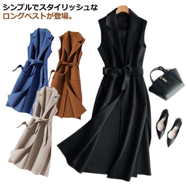 送料無料 ベスト ジレ ロング レディース 春秋冬 ノースリーブ トップス ジャケット コート フォーマル 前開き おしゃれ 大きいサイズ 着回し シンプル 通勤 オフィス カジュアル レイヤード