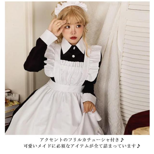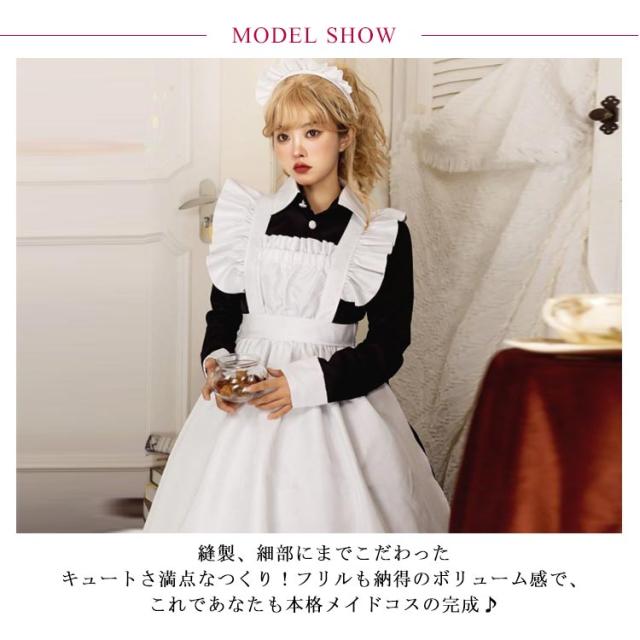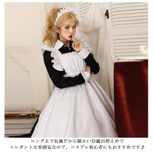 メイド服 ロング 長袖 3点セット カチューシャ付き エプロン ワンピース クラシック 大きいサイズ 女装 ゴスロリ 送料無料 ハロウィン 仮装 パーティー イベント カフェ コスチューム ハロウィン 学園祭 文化祭