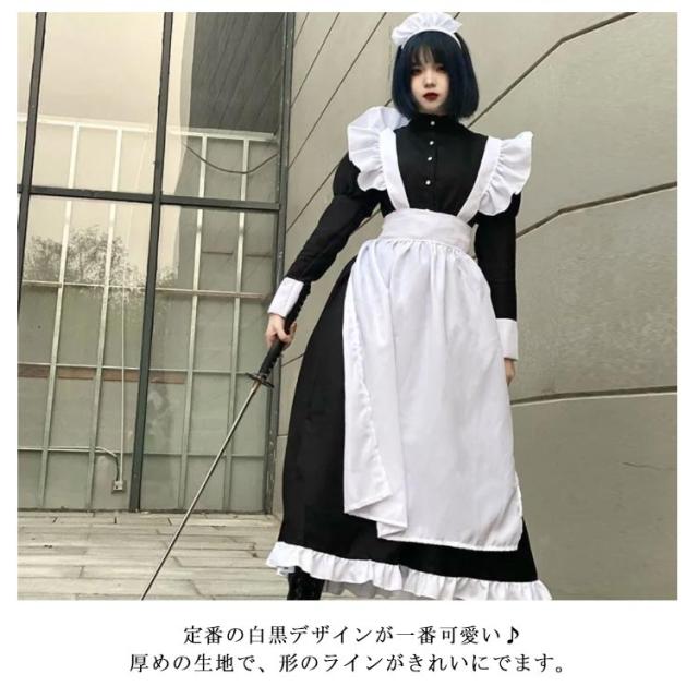 クラシカル ロイヤルメイド メイド服 ロング丈 ワンピースタイプ カチューシャ コスプレ コスチューム 衣装 男子 女子 仮装 変装 制服 アイドル 大人 コスチューム カフェ 学園祭 文化祭 おしゃれ かわいい
