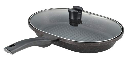 ベストコ グリルパン ブラウン 幅33.5cm ピンクダイヤモンドコート油を落す ガラス蓋付 IH対応 ND-4596