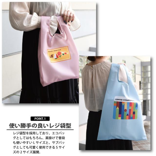 ・肩掛けもできる L とサブバッグとしても使える S の2サイズ全6種。