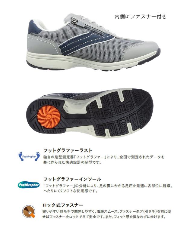 アサヒメディカルウォーク ウォーキングシューズ メンズ 4E 歩きやすい 男性用 スポーツ メッシュ 通気性 運動靴 ファスナー 父の日 プレゼント ギフト 旅行 大きいサイズ 黒 ブラック ベージュ グレー ネイビー MS-C