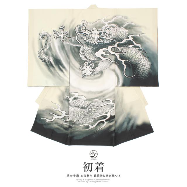 産着 男の子 龍 クリーム 黒 お宮参り 初着 掛け着 うぶぎ 祝着 お祝い 送料無料