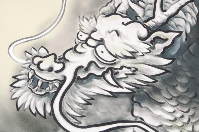 空に登る龍が水墨画のように描かれたレトロモダンなデザインです。