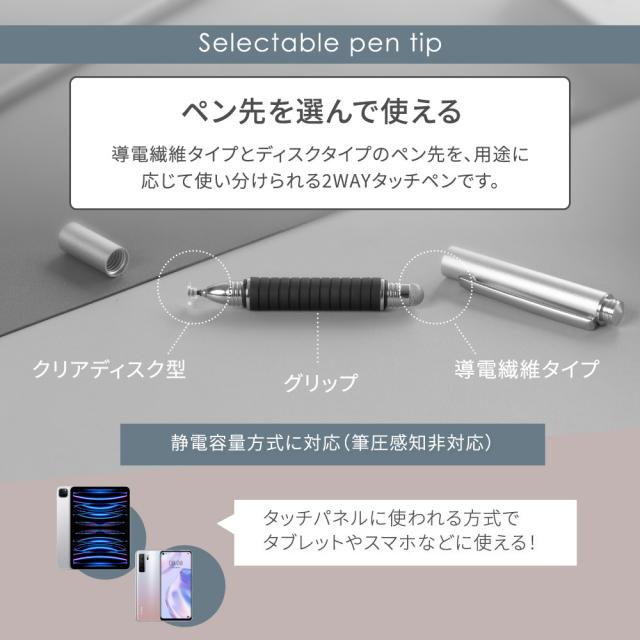 タッチペン スマホ 2way ディスク型 導電性繊維 替え芯付き iPhone iPad スマホ タブレット