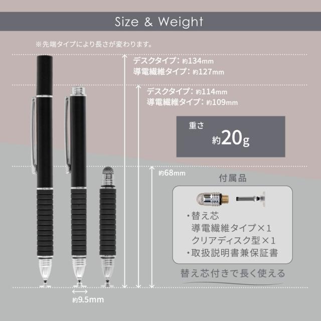 Touch pen スタイラスペン ペンシル スマホ スマートフォン タブレット iPhone iPad android アンドロイド タッチパネル タッチ操作 手袋したまま ディスクタイプ 導電繊維 電源不要 充電不要 2通り 柔軟 お絵描き 手書き イラスト ペンクリップ グリップ 滑らない 替え芯付き ブラック black シルバー silver owltech オウルテック おうるてっく