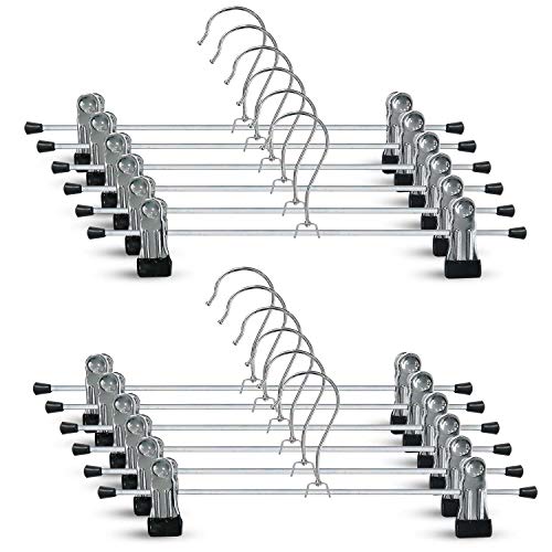 KiGesYo スカートハンガー ズボンハンガー クリップ 洗濯 ハンガー 保護ラバーで傷つかず 360度回転 サイズ調整可 12本セット 幅30cm